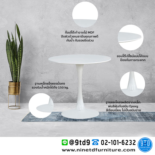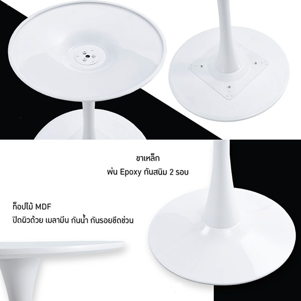 - ท็อปโต๊ะทำจากไม้ MDF ปิดผิวด้วยเมลามีน กันน้ำ กันรอยขีดข่วน