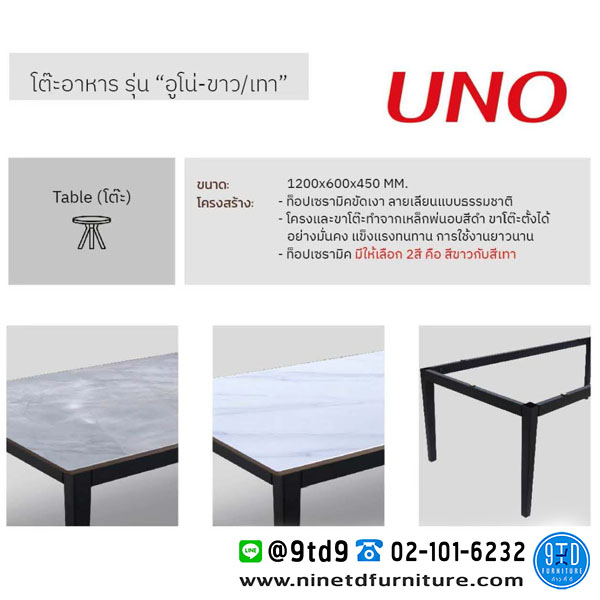 - โครงและขาโต๊ะทำจากเหล็กพ่นอบสีดำ ทำให้โต๊ะตั้งได้อย่างมั่นคง แข็งแรงทนทาน การใช้งานยาวนาน