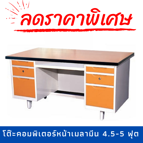 โต๊ะคอมพิวเตอร์เหล็ก 4.5 – 5 ฟุต (หน้าเมลามีน) TCW45/TCW5F
