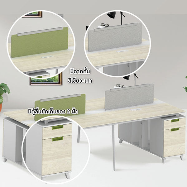 - โต๊ะมีฉากกั้น MFC แบ่ง 2 ฝั่ง