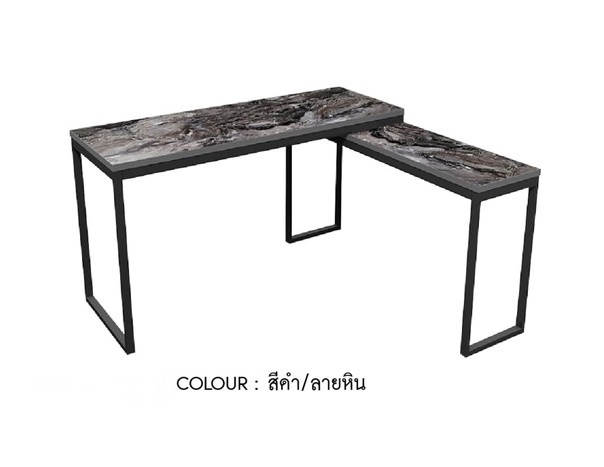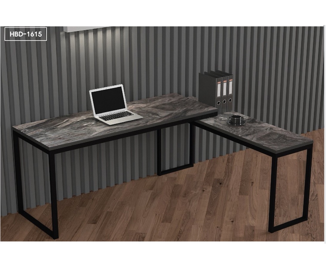 โต๊ะทำงานตัวแอล 160CM HBD-1615 (สีดำ/ลายหิน)