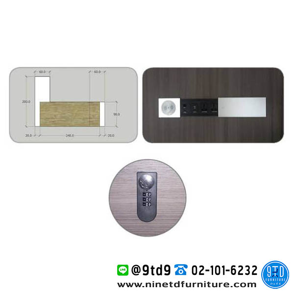 - หน้าโต๊ะมีกล่องสำหรับเสียบปลั๊กไฟฟ้า 220-240V, พอตท์ USB 5V 2A, HDMI, NET มัลติฟังชั่น+การชาร์ทแบบไร้สาย