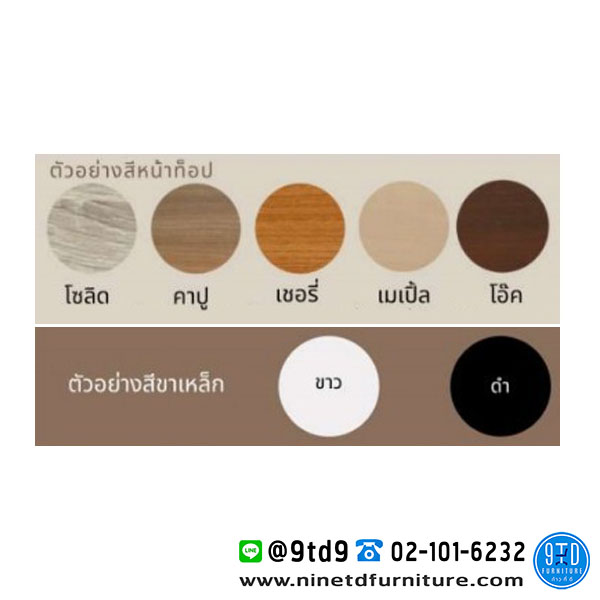 หน้าโต๊ะมีให้เลือก 5 สี : โซลิด, เมเปิ้ล, เชอร์รี่, คาปู, โอ๊ค