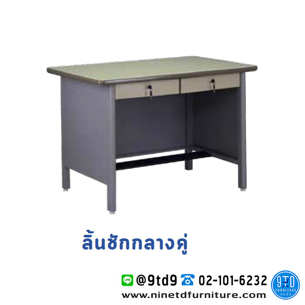 โต๊ะทำงานเหล็ก 3.5 ฟุต ลิ้นชักกลางคู่ TWD35F
