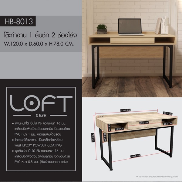 โต๊ะทำงาน 1 ลิ้นชัก 2 ช่องโล่ง HB-8013 LOFT