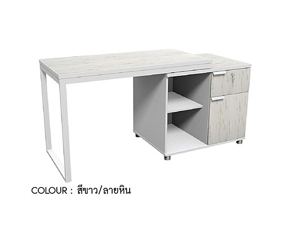 โต๊ะทำงาน 120CM พร้อมตู้ 80CM HBD-1262 (สีขาว/ลายหิน)