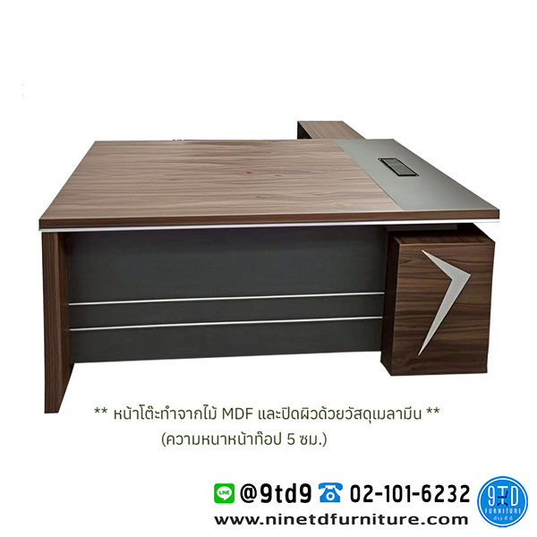 - หน้าโต๊ะทำจากไม้ MDF ปิดผิวด้วยวัสดุเมลามีน