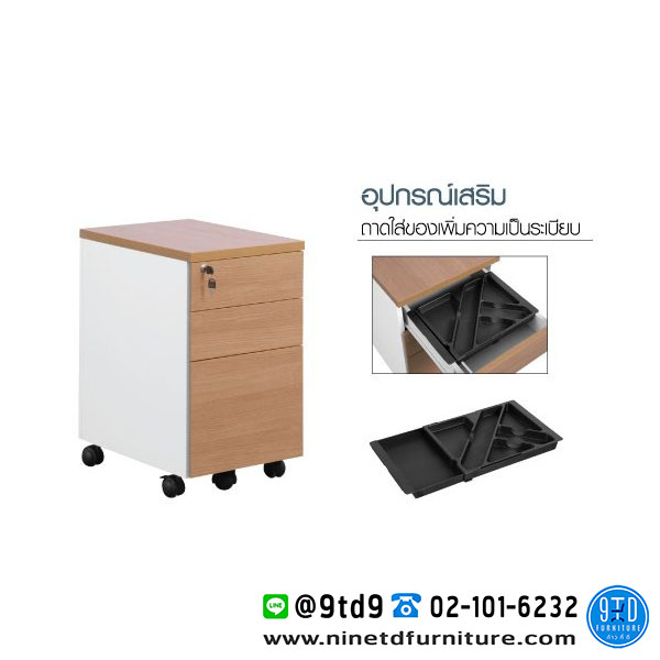 - ตู้ 3 ลิ้นชักพร้อมกุญแจล็อค มีล้อ มีถาดใส่ของเพิ่มความเป็นระเบียบ