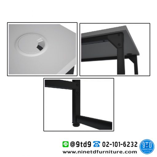 - หน้าโต๊ะหนา 25 มม. ปิดผิวด้วยเมลามีน มาพร้อมรู GROMMET สำหรับเก็บสายไฟ