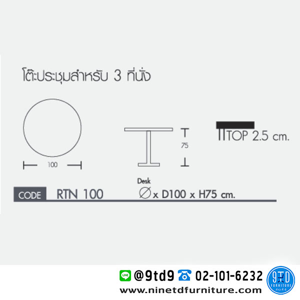 โต๊ะประชุมกลม ขนาด 100 ซม. รุ่น RTN-100 (ไม่รวมเก้าอี้)