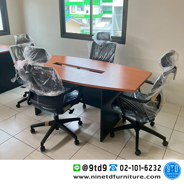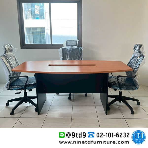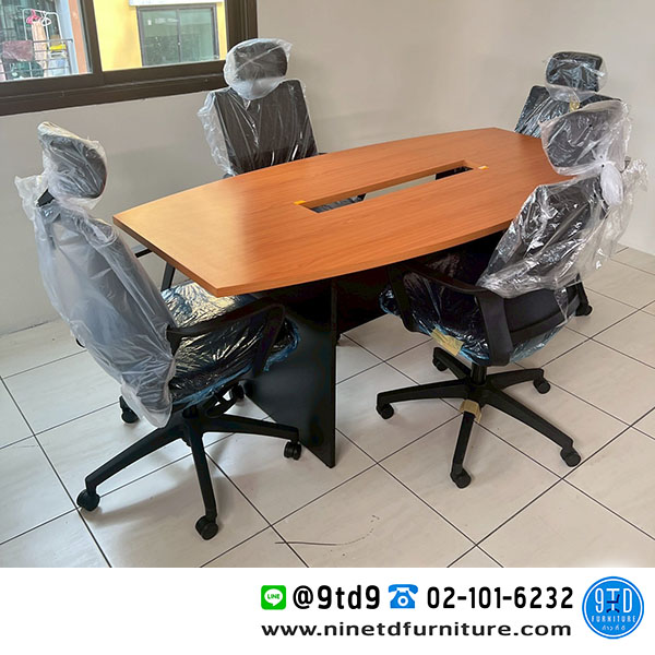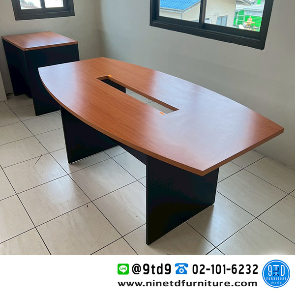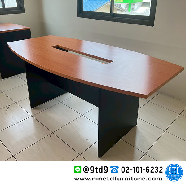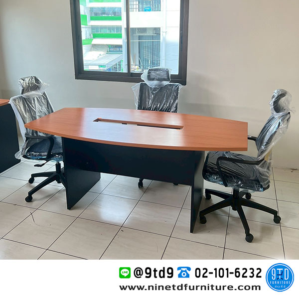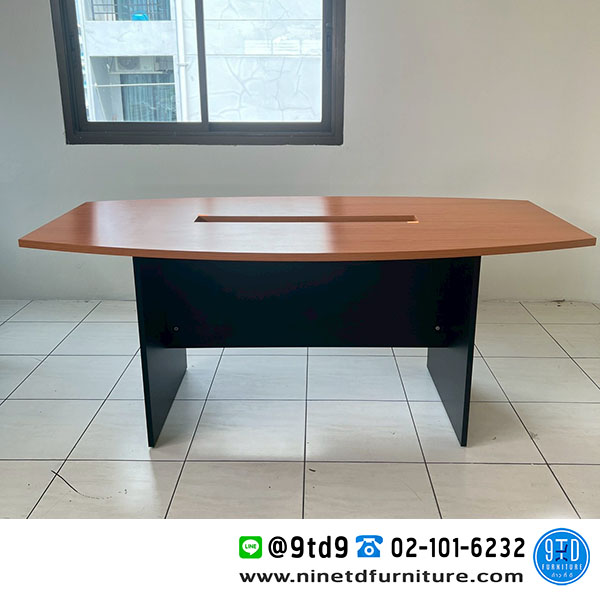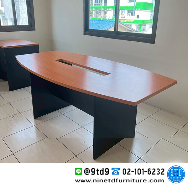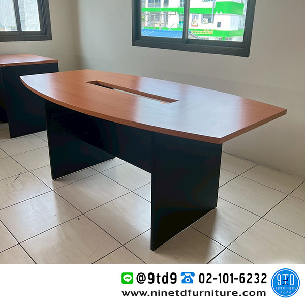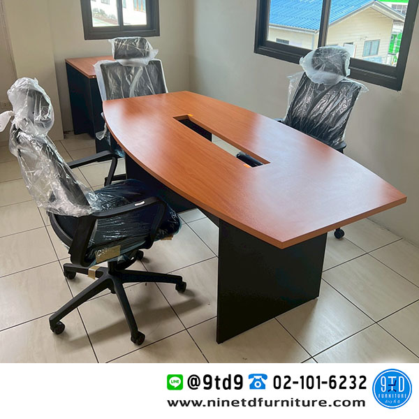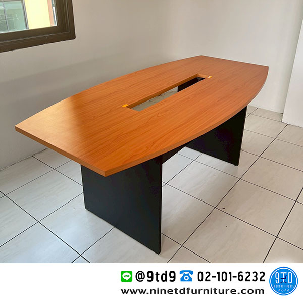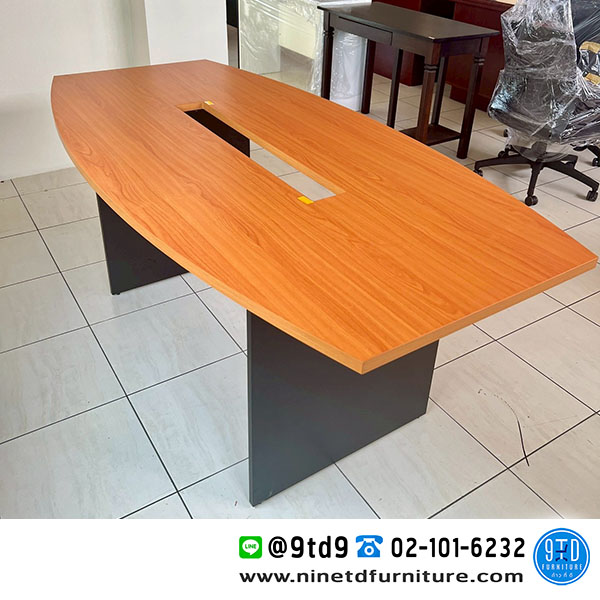 โต๊ะประชุมทรงเรือ มีรูร้อยสายไฟตรงกลาง