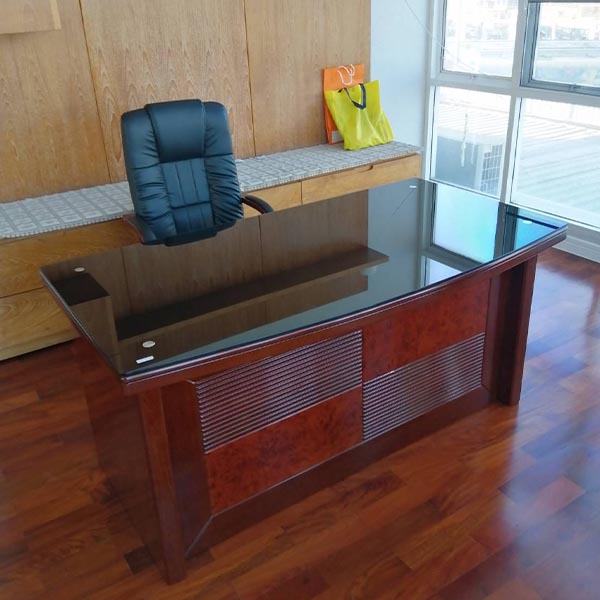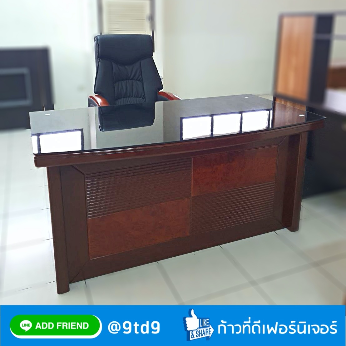 โต๊ะผู้บริหาร รุ่น Line (ไลน์) Top กระจกสี glossy black