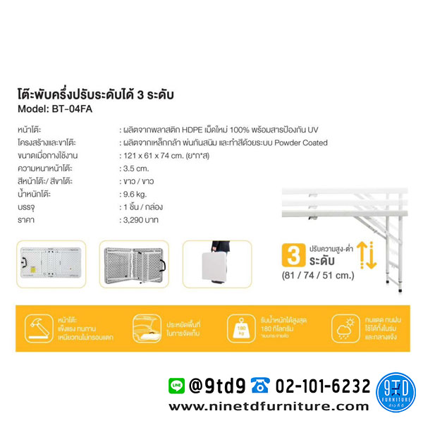โต๊ะพับครึ่งอเนกประสงค์ ขนาด 120 ซม. รุ่น BT-04FA
