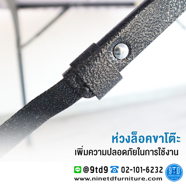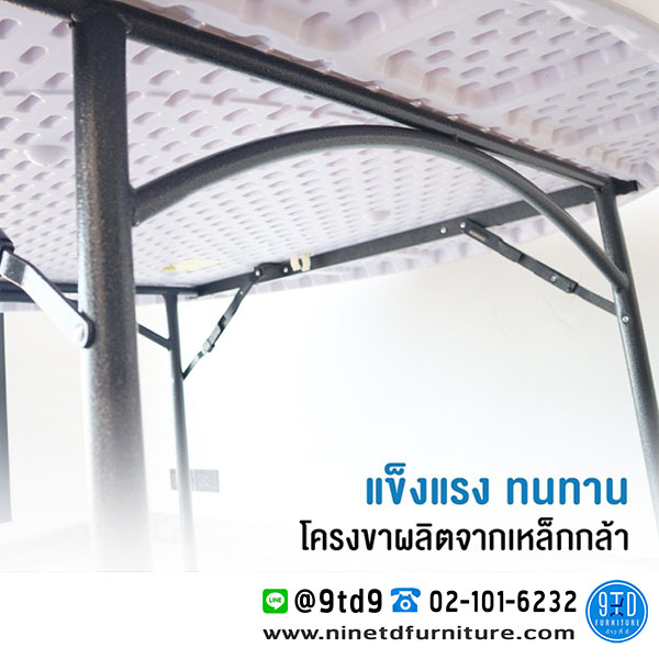 โครงสร้างและขาโต๊ะ : ผลิตจากเหล็กกล้า พ่นกันสนิม และทำสีด้วยระบบ Powder Coated