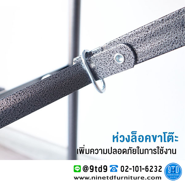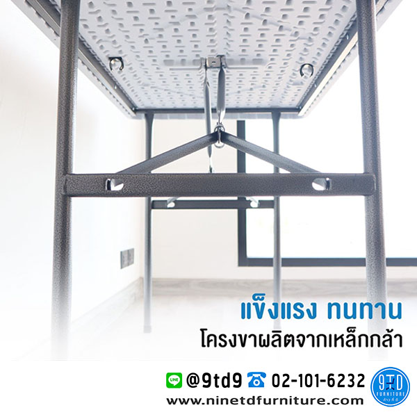โครงสร้างและขาโต๊ะ : ผลิตจากเหล็กกล้า พ่นกันสนิม และทำสีด้วยระบบ Powder Coated