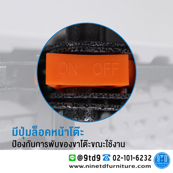 โครงสร้างและขาโต๊ะ : ผลิตจากเหล็กกล้า พ่นกันสนิม และทำสีด้วยระบบ Powder Coated