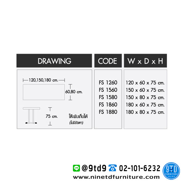 โต๊ะพับ/โต๊ะพับอเนกประสงค์ รุ่น FS-1880 ไม่มีบังตา
