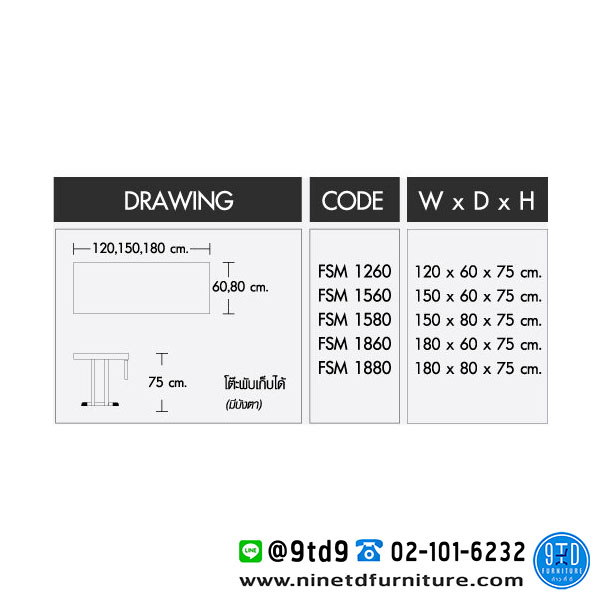 โต๊ะพับ/โต๊ะพับอเนกประสงค์ รุ่น FSM-1260 มีบังตา