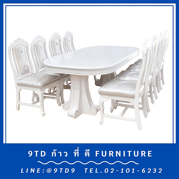 โต๊ะรูปป้าน 110*210 ซม. ขาโรมัน+เก้าอี้หลุยส์สีพ่นขาว