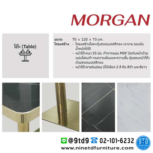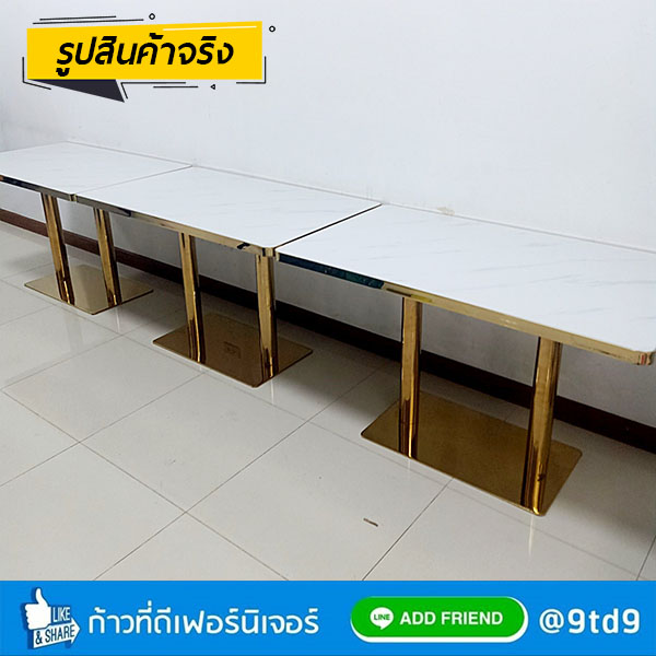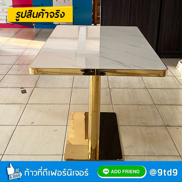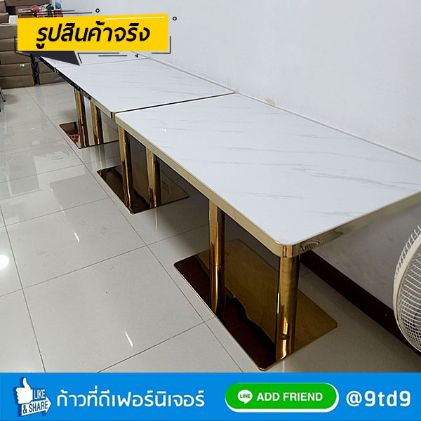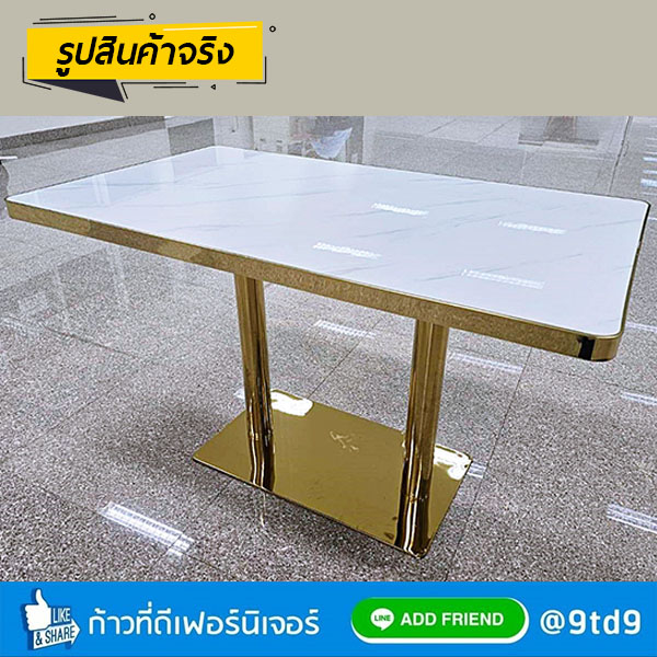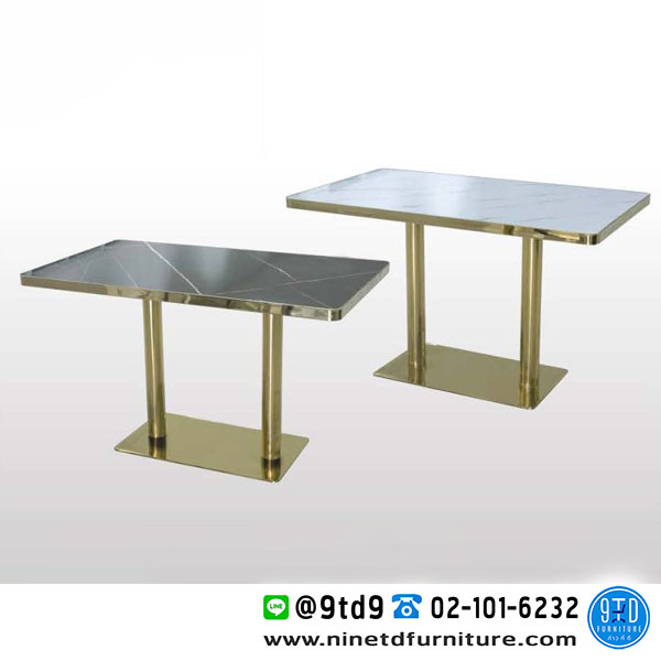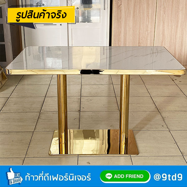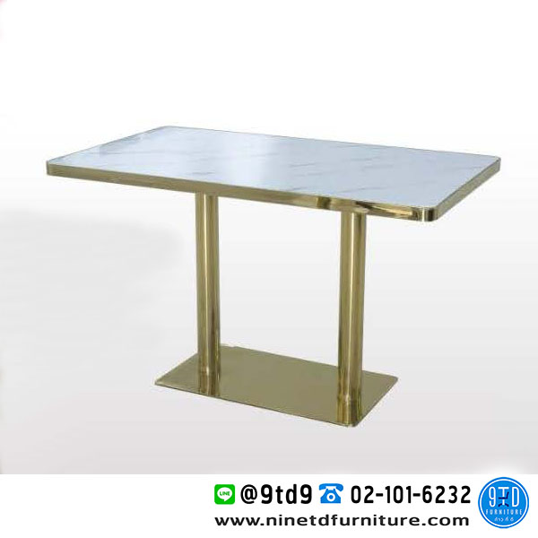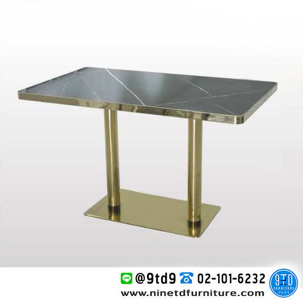 - หน้าโต๊ะ หนา 35 mm. ทำจากแผ่น MDF ปิดทับหน้าด้วยแผ่นโฟเมก้า ทนความร้อนและความชื้น หุ้มขอบหน้าโต๊ะด้วยสแตนเลสสีทอง
